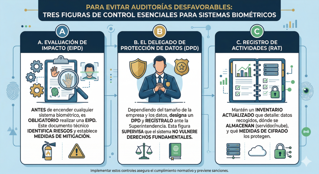 Antes de encender cualquier sistema biométrico, es obligatorio realizar una Evaluación de Impacto en la Protección de Datos. Este documento técnico identifica los riesgos de seguridad y establece las medidas para mitigarlos.